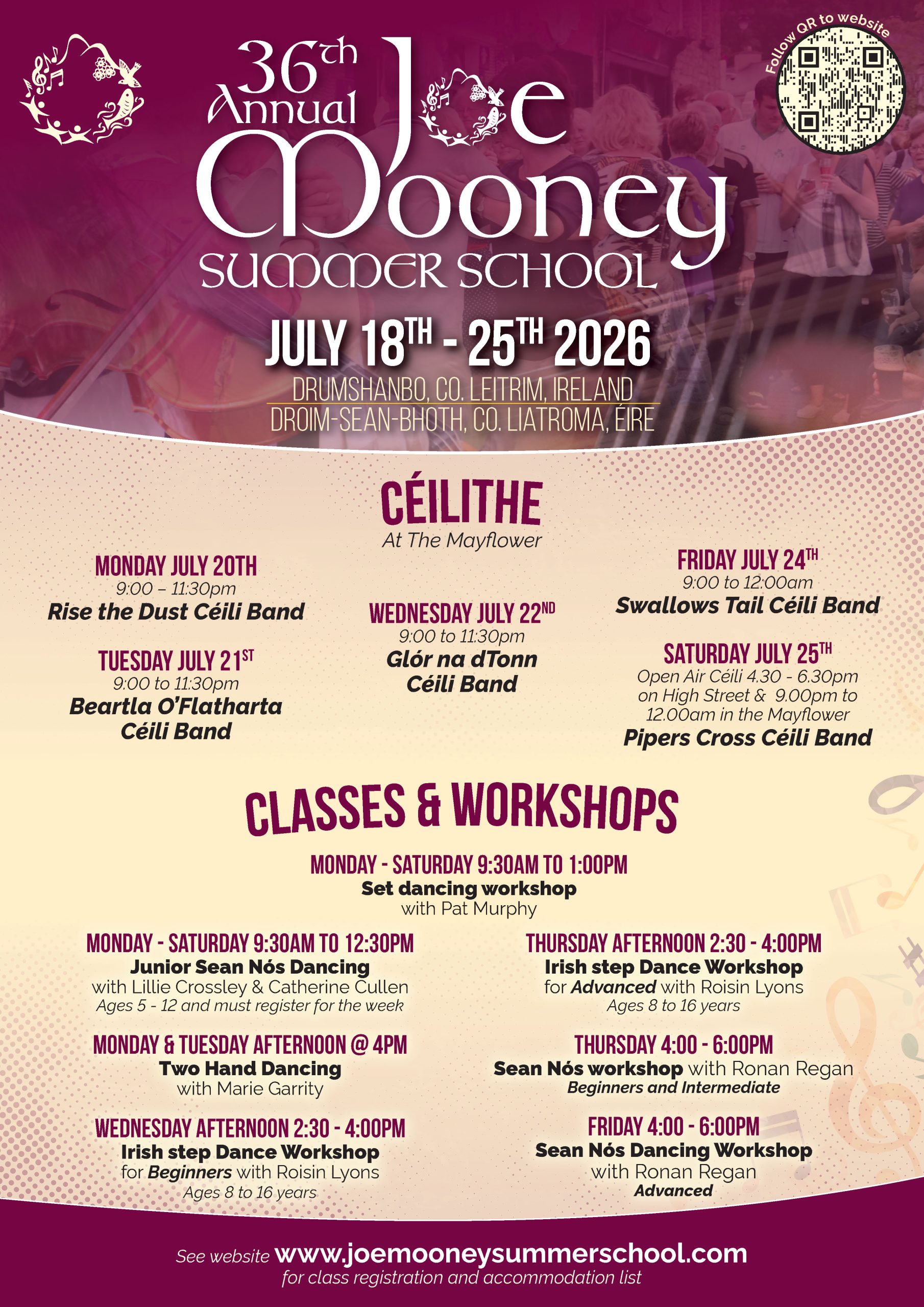 We are delighted to say that the 36th Joe Mooney Summer School will take place from the 18th to the 25th July 2026.
